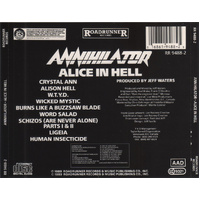 Alice in Hell is the debut studio album by Canadian thrash metal band Annihilator, released on April 17, 1989 through Roadrunner Records. This was the only Annihilator album for ten years to feature Randy Rampage on vocals, until he returned for their seventh studio album Criteria for a Black Widow (1999).