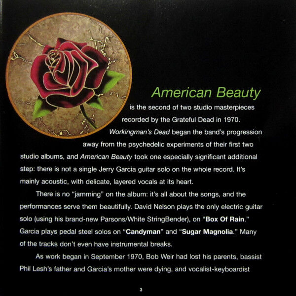CD side: Tracks as listed, in stereo. DVD-Audio side: Tracks as listed above, in Advanced Resolution 96K/24-Bit Surround and Advanced Resolution 192K/24-Bit Stereo. DVD-Video exclusive interviews with Mickey Hart and Bob Weir Photo gallery Lyrics to all songs Packaging erroneously says Advanced Resolution 192kHz/24-Bit Stereo. The DVD-Audio Stereo data are 96kHz/24bit. Jewel case with partly transparent O-case. Includes a 16-page booklet.
