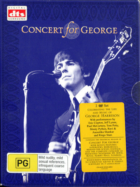 Rock music's most celebrated musicians gathered at London's Royal Albert Hall on November 29, 2002 to pay tribute to their friend George Harrison on the one year anniversary of his death.It was a magical evening that is lovingly captured on film by the award-winning director David Leland and features Eric Clapton, Jeff Lynne, Paul McCartney, Tom Petty and the Heartbreakers, Billy Preston, Ringo Starr and Ravi and Anoushka Shankar.Tracklisting includes: 'If I Needed Someone', 'Here Comes The Sun', 'Horse The Water', 'Taxman', 'Handle With Care', 'Something', 'While My Guitar Gently Weeps', 'My Sweet Lord', 'I'll See You In My Dreams'.Highlights include:- Jeff Lynne performing 'Inner Light' and 'Give Me Love'.- Tom Petty and the Heartbreakers singing 'Taxman' and 'I Need You'.- Jeff Lynne, Tom Petty and the Heartbreakers, and Dhani Harrison performing the Travelling Wilbury classic 'Handle With Care'.- Ringo Starr singing 'Photograph' which he co-wrote with George.- Paul McCartney performing 'For You Blue' and 'All Things Must Pass'.- A classic Monty Python sketch with the cast and special guest Tom Hanks.- Anoushka Shankar and a 16 piece orchestra performing a composition especially written by her father Ravi Shankar.- Joe Brown closing the show with a moving version of 'I'll See You In My Dreams' .Eric Clapton was the musical director of 'Concert For George' and alongside Jeff Lynne collaborated on all audio elements of the film including special interviews and backstage footage.Both DVDs dual layer DVD9s. Audio in Dolby Digital 5.1 Surround Sound, DTS 5.1 Surround Sound and Dolby Digital Stereo 2.0