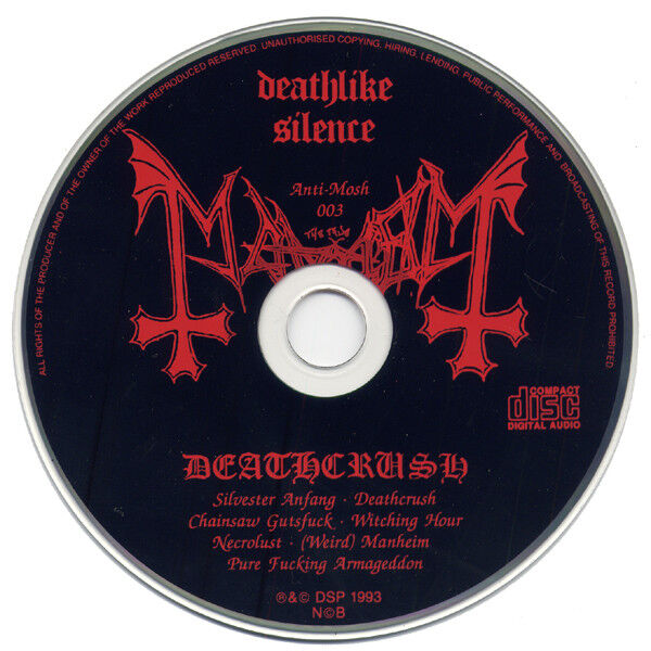 Deathcrush is the debut EP and overall first commercial release by Norwegian black metal band Mayhem. It was released in August 1987 by Posercorpse Music. The album's lyrics explore topics such as murder, necrophilia and maggots.