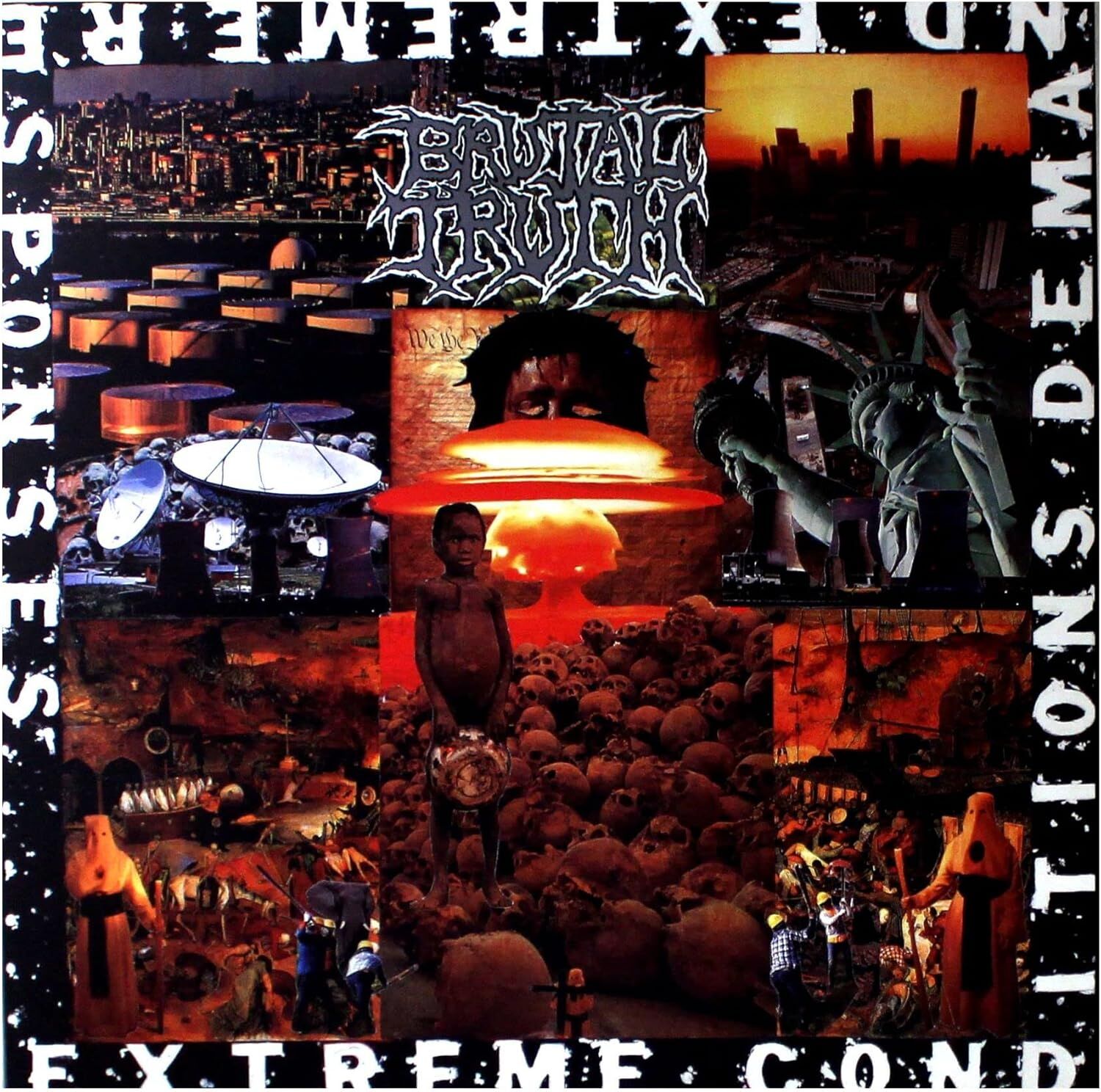 Originally released in 1992, Brutal Truth's 'Extreme Conditions Demand Extreme Responses' was produced by the legendary Colin Richardson and is widely regarded as one of the most important and influential grindcore records of all time. Reissued for the first time ever with 'Full Dynamic Audio' this release is a must have for any fan of Grindcore. PRESSED FROM THE ORIGINAL MASTER TAPES. THESE ALBUMS HAVE BEEN SPECIALLY RECREATED USING 'FDR' - FULL DYNAMIC RANGE MASTERING - ALLOWING THE MUSIC'S NUANCES TO SHINE THROUGH AND GIVING THESE CLASSIC ALBUMS A MORE FEROCIOUS AND DYNAMIC SOUND, ENABLING THE LISTENER TO IMMERSE IN THE FULL AUDIO HEAVINESS LIKE NEVER BEFORE.
