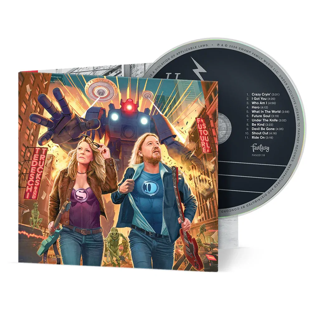 With Future Soul, Tedeschi Trucks Band expands their horizon without losing the roots that ground them. Produced by the genre-bending Mike Elizondo (known for his work with 21 Pilots and Turnstile), the album finds the 12-piece ensemble exploring deeper grooves and richer textures than ever before. The title track, “Future Soul,” hits with a muscular riff and searing vocals, proving the band can still unleash full- tilt rock whenever they choose. “I Got You” arrives as an early fan favourite from its live debut. “Crazy Cryin’” pours out emotion, weaving gospel inflections with blues-soaked grit in unmistakable TTB style. “Who Am I” turns inward, spotlighting Susan Tedeschi’s soulful presence and the lyrical touch of Derek Trucks’ guitar in a strikingly natural balance. Lyrically, the record looks forward as much as it looks within—grappling with identity, resilience, and hope in uncertain times. Elizondo’s production adds subtle modern touches—warm bass, layered percussion, and space for the horns and background vocals to shine—without sacrificing the organic interplay that defines the band’s live magic. Future Soul, stands as both a reinvention and a reaffirmation: a vibrant next chapter for one of America’s most formidable bands.