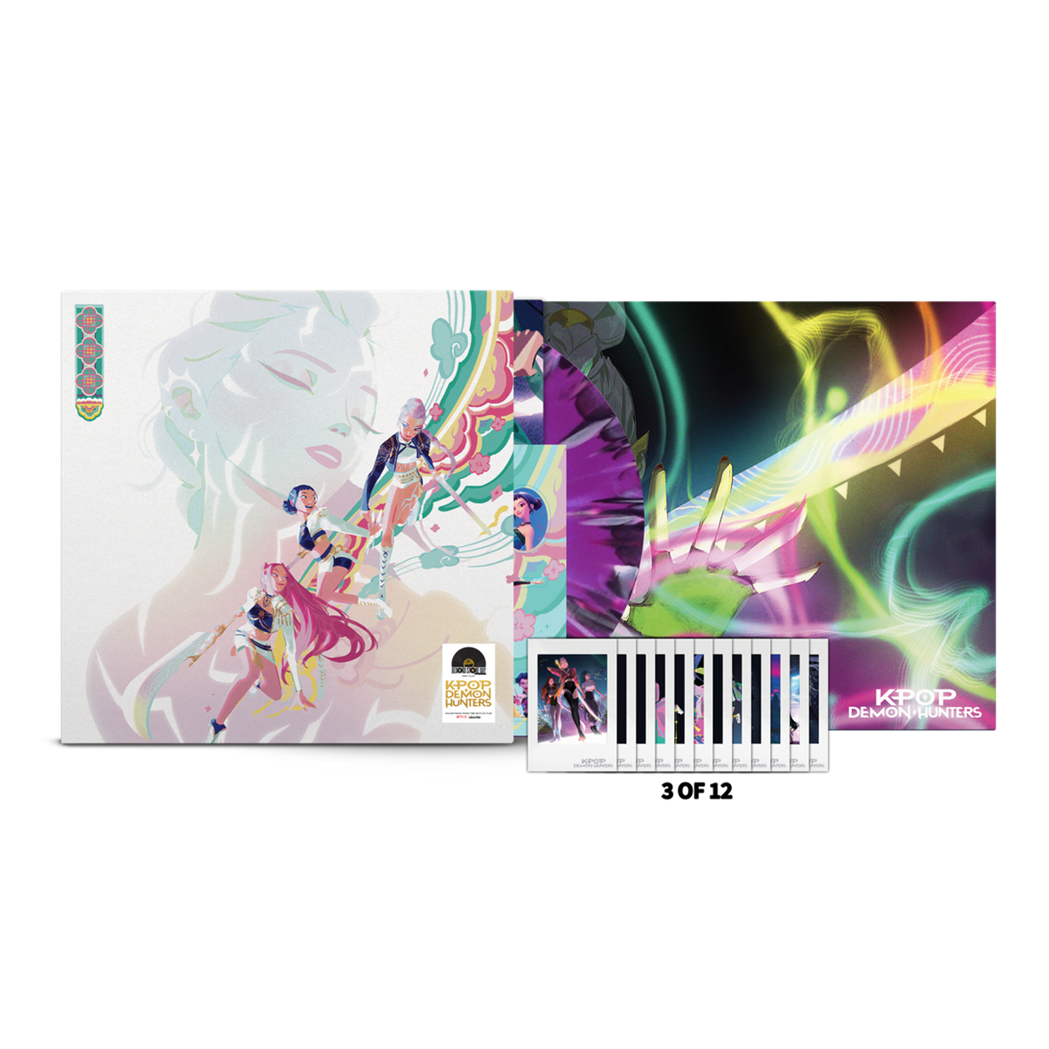 1 LP special effect vinyl featuring original art cover by official KPop Demon Hunters vis dev artist, Marion Bordeyne. Includes fold-out poster, sticker sheet, and three snapshot cards (3 of 12 versions). Record Store Day Exclusive.