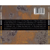 Tracks are drawn from albums I'm Your Man (1988) and The Future (1993), as well as the live album Cohen Live (1994). The collection also features two unique tracks: Never Any Good" (recorded 1995 in Los Angeles) and "The Great Event"."