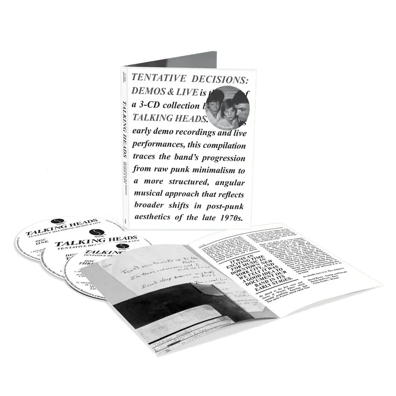 Talking Heads members Chris Frantz and David Byrne met as students at Rhode Island School of Design, and made music in a college band called The Artistics. In spring semester 1974, the band gathered in Frantz's Benefit Street apartment to record a demo tape. The cassette featured tracks soon to be classics in The Talking Heads discography: "Warning Sign" and "Psycho Killer." This 3CD collection includes this newly discovered material alongside additional demo and live tracks recorded by the original trio lineup of the band (Bassist Tina Weymouth alongside Frantz and Byrne) in 1975 and 1976 alongside the first official release of the band's demo session for CBS/Columbia Records in 1975 as well as rare live recordings of the original trio lineup in 1976 and 1977.