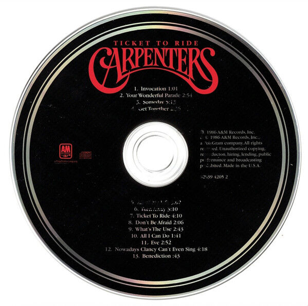 REMASTERED CLASSICS series Black CD, red font Digitally remastered from original source tapes for superior sound quality by Bernie Grundman and Richard Carpenter at Bernie Grundman Mastering ? 1986 A&M Records, Inc. & © 1986 A&M Records Inc.