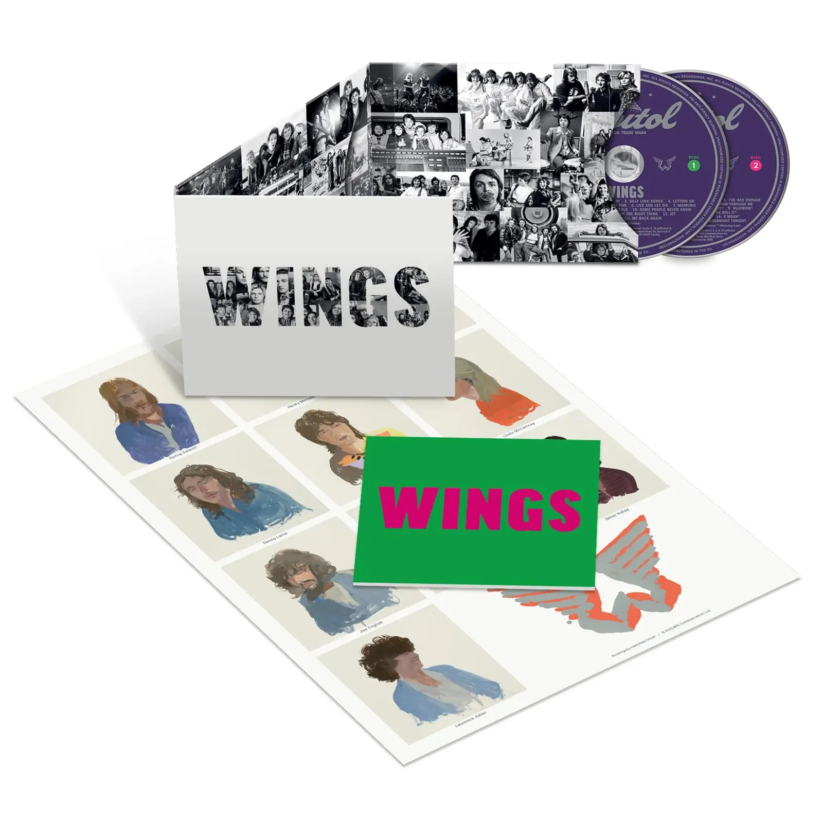 WINGS is the ultimate anthology of the band that defined the sound of the 1970s. A lovingly curated time capsule of imagery and music personally overseen by Paul McCartney, WINGS includes 32 timeless international hits including 'Band on the Run', 'Live and Let Die', ‘Jet' and 'Let ‘Em In' - songs that still feature in his live shows to this day. The WINGS collection was designed by Paul and Aubrey 'Po' Powell of Hipgnosis. The expanded booklet also includes an introduction by Paul plus extensive album-by-album notes on the iconic artwork written by Po, with additional editorial by Pete Paphides and showcases original portraits of the band by Humphrey Ocean. In addition to the booklet, the 2CD set includes a poster.