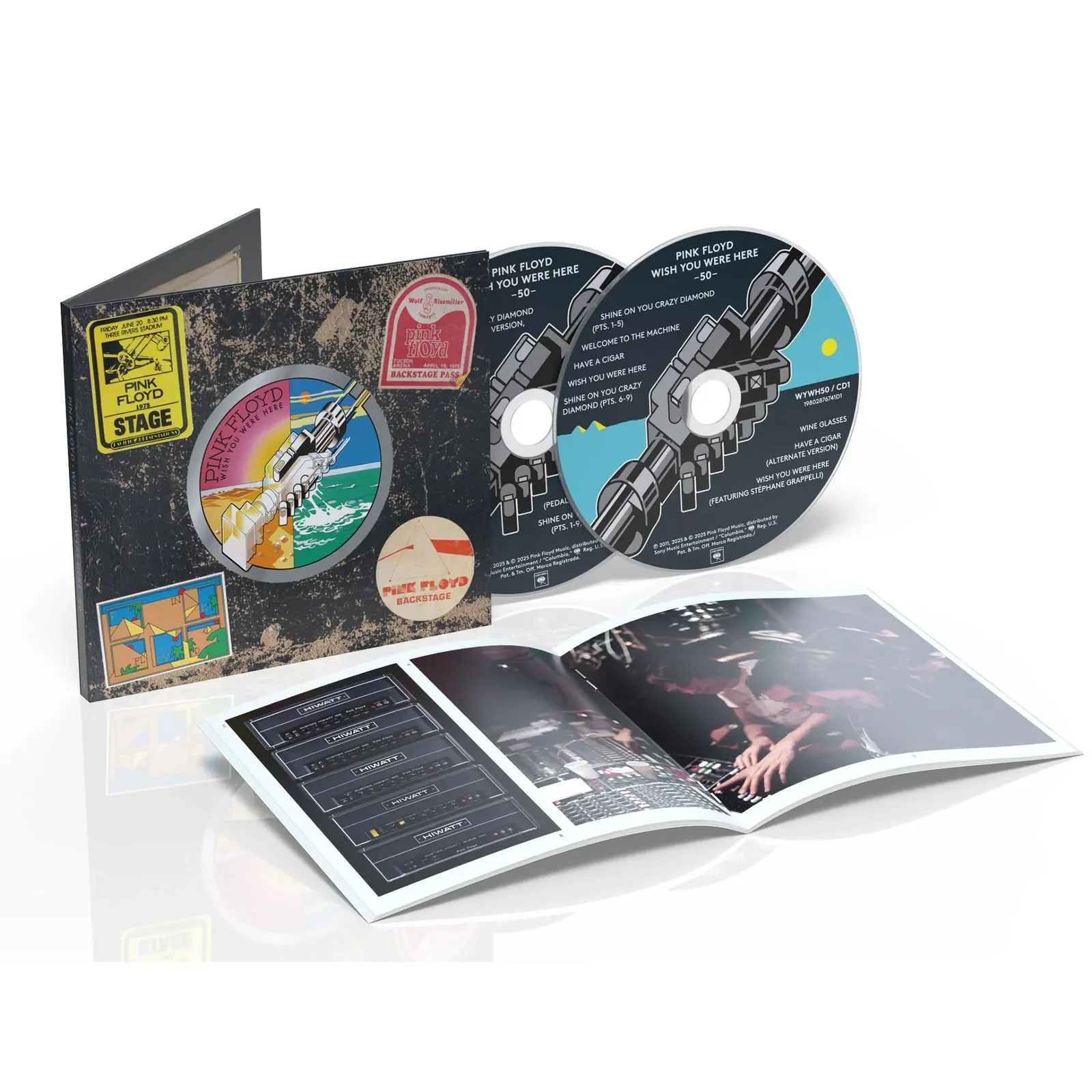 Wish You Were Here 50 gives fans an exciting new perspective into one of Pink Floyd’s most iconic and best-loved records. The 50th Anniversary edition features the original album plus a bonus disc of studio rarities including previously unreleased alternate versions and demos presenting Pink Floyd's eighth studio album in a brand-new way that demands repeat listening. Featuring 'Shine On You Crazy Diamond', the hypnotic 'Welcome To The Machine', the scathing 'Have a Cigar', and the essential title track, Wish You Were Here is undoubtedly one of the most important album releases in the history of popular music. The record’s themes of absence, isolation, transience, and comment on the insincerity of the music business are embodied in the iconic album artwork. 50 years since its release, Wish You Were Here sounds as resonant and vital as ever. This special anniversary edition allows fans, for the first time, to delve deeper into a pivotal moment in Pink Floyd’s history.
